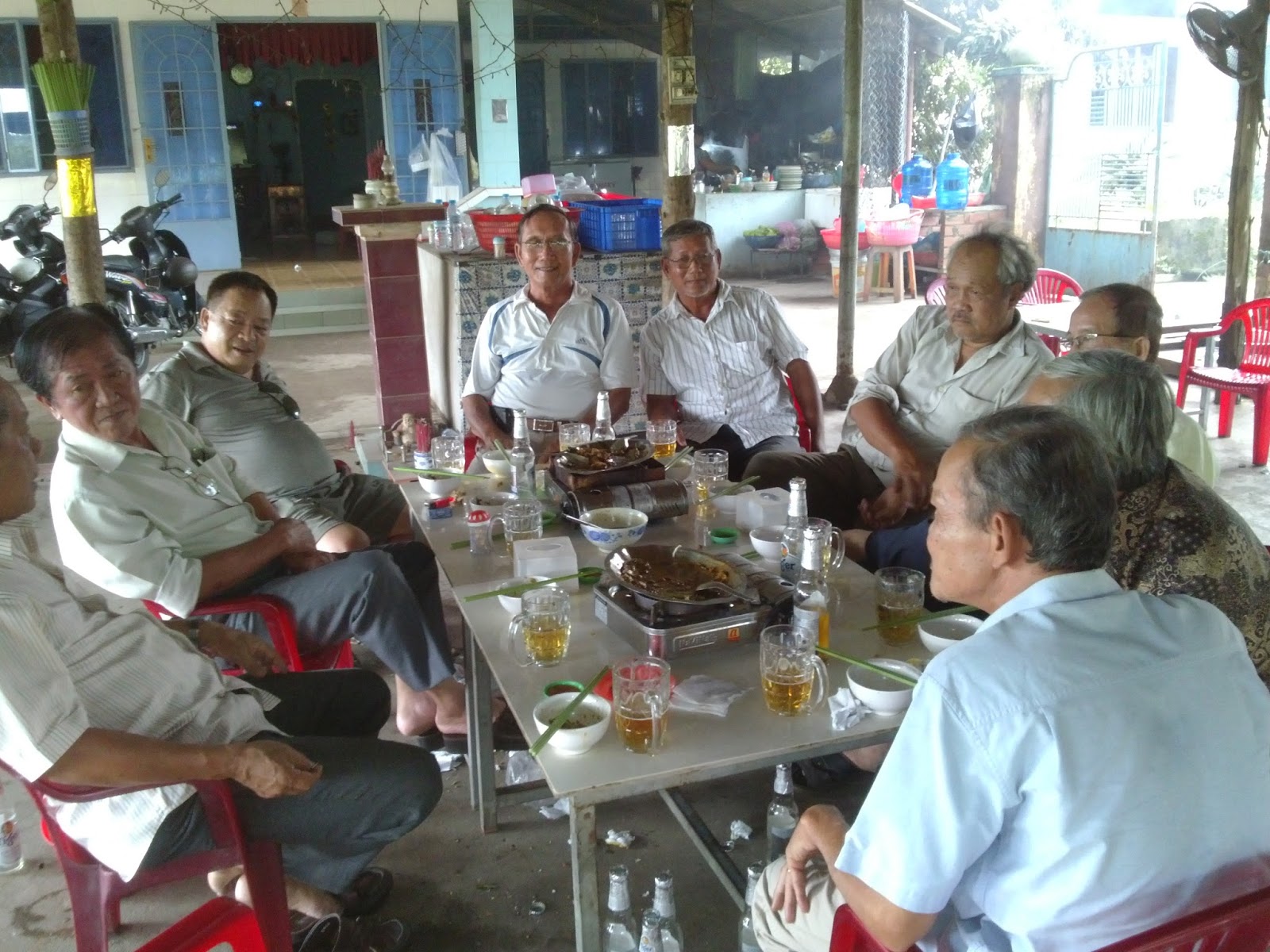 Hôm nay thời tiết cũng hơi âm u, nhưng chưa mưa, bạn bè đến đầy đủ, trừ Huê đến sau. Bên lớp thất 4 Anh Văn có Long, Thông, Thọ. Bên lớp thất 3 Pháp văn có, Chiếu, Trí, Chánh, Tâm khỉ, Luận, Huê. 10 người, gọi 1 kết bia 20 chai con cọp 330 ml, và món vịt nấu cà ri, vịt nướng chao. Bao nhiêu đó cũng đủ bạn bè tâm sự. Những bạn bè còn ở xa, như Sang ở Lái Thiêu, Bình ga ở Sài Gòn, Lực lu ở Thủ Đức...đành chịu. Những gì của hơn 40 năm qua, ngày tháng đến trường, đến lớp được khơi gợi để cùng nhớ. Ngày nào tóc đen, áo trắng quần xanh, bây mái tóc của nhau đã bạc màu sương gió, nắng úa thời gian. Nhưng kỷ niệm không phai mờ.